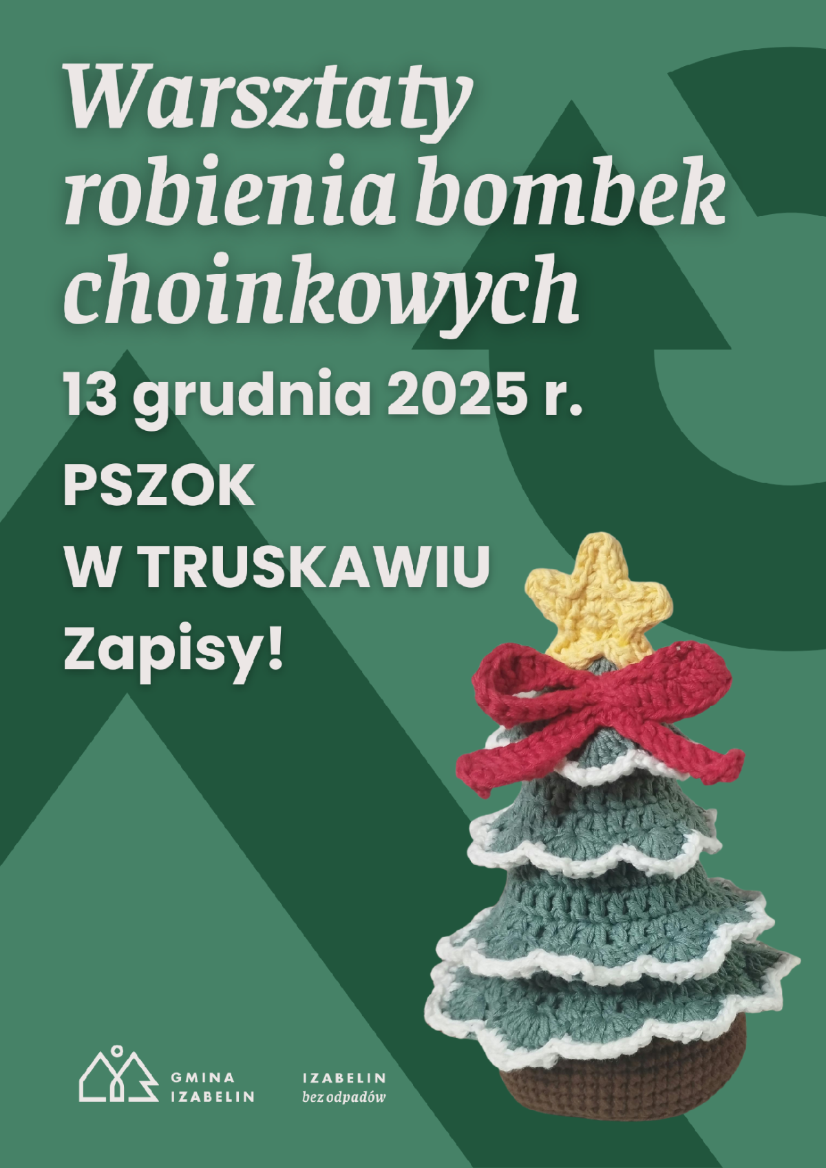 Choinki z recyklingu, drewniane bombki z recyklingowych plastrów drewna czy może gwiazdki z rolek po papierze toaletowym? To wszystko możecie Państwo sami wykonać podczas sobotnich warsztatów robienia ozdób choinkowych w gminnym PSZOK-u (ul. Mokre Łąki 6, Truskaw).