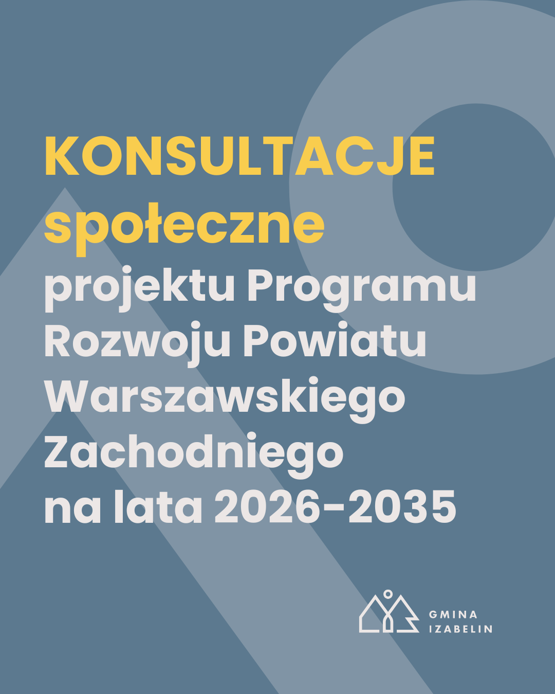 Starosta Warszawski Zachodni ogłasza przeprowadzenie konsultacji społecznych projektu Programu Rozwoju Powiatu Warszawskiego Zachodniego na lata 2026–2035 wraz z diagnozą sytuacji społecznej, gospodarczej i przestrzennej powiatu.