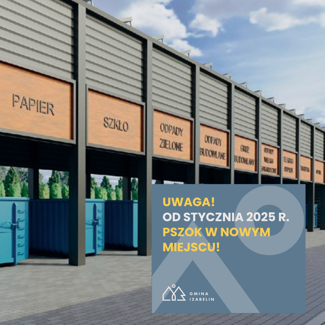 Od początku stycznia 2025 roku gminny Punkt Selektywnej Zbiórki Odpadów Komunalnych (PSZOK) zmieni lokalizację i godziny funkcjonowania. Do tego czasu, do końca grudnia - mieszkańców zainteresowanych oddaniem odpadów do PSZOK-u - zapraszamy na ul. Fedorowicza w Hornówku....