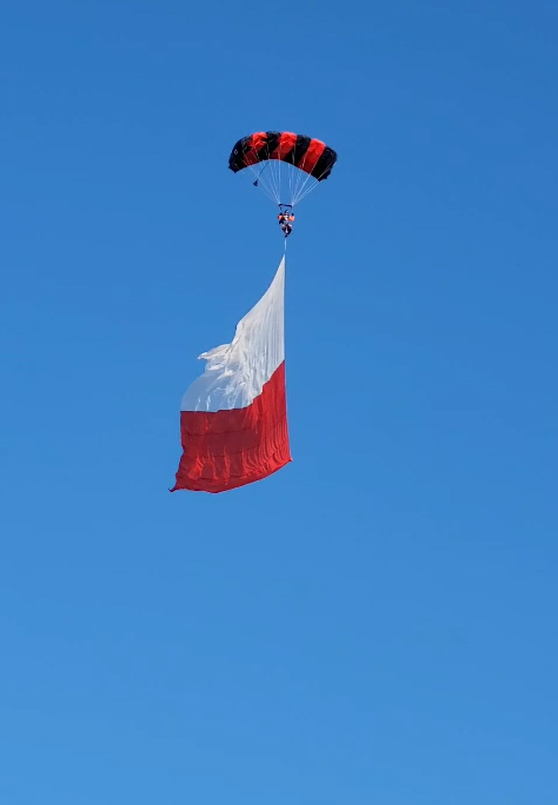 Piloci z Aeroklubu Warszawskiego zapewnili pokazy lotnicze, a niewątpliwą atrakcją, oprócz m.in. przelotów śmigłowców czy samolotów Zespołu Pokazowego „Dwójka z AW”, był skok skoczków spadochronowych z ogromną biało-czerwoną flagą.