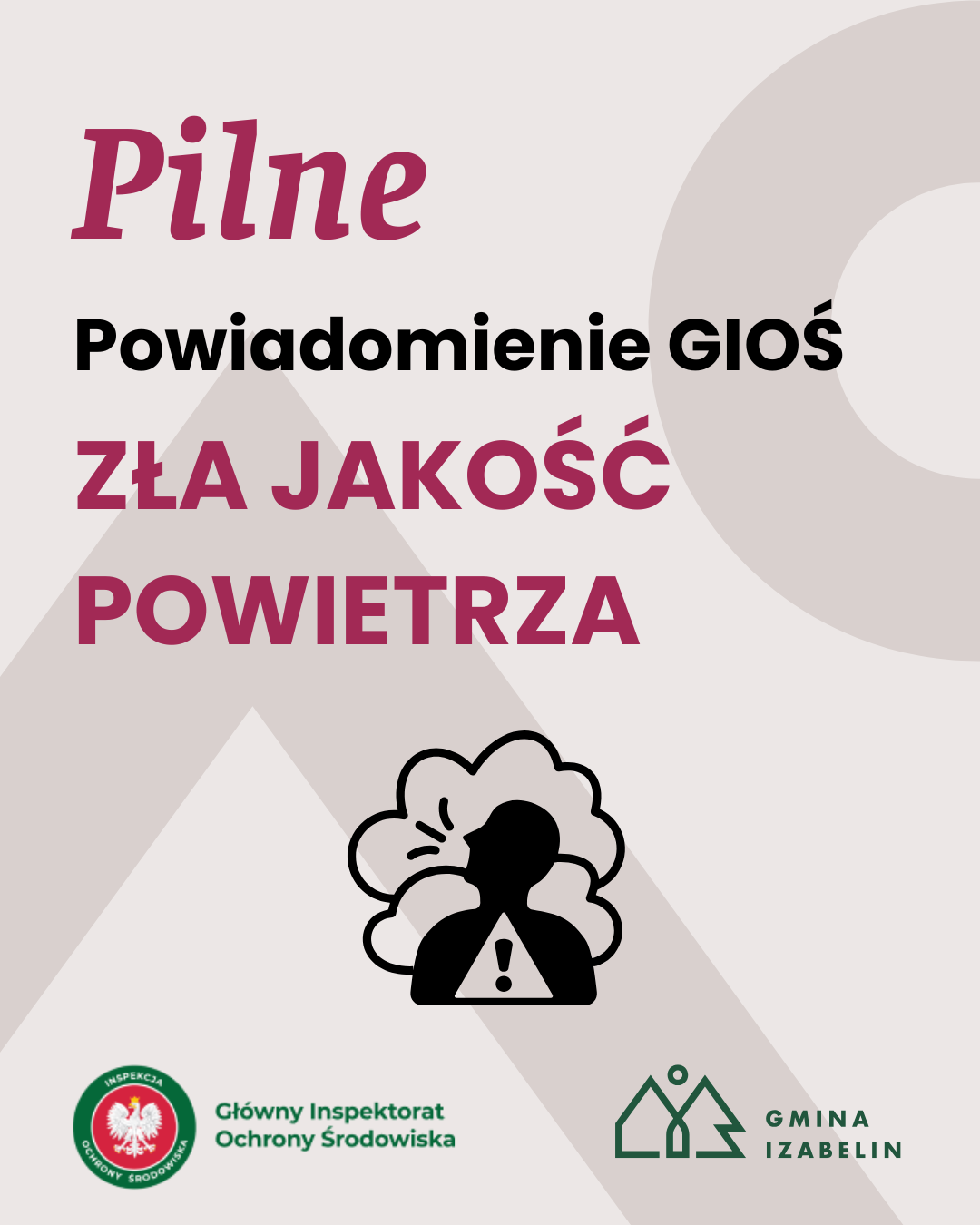 Główny Inspektorat Ochrony Środowiska informuje o ryzyku wystąpienia przekroczenia średniodobowego poziomu informowania dla pyłu zawieszonego PM10 w powietrzu i powstaniem ryzyka wystąpienia przekroczenia średniodobowego poziomu informowania – 100 µg/m3 dla pyłu zawieszonego PM10 w powietrzu.