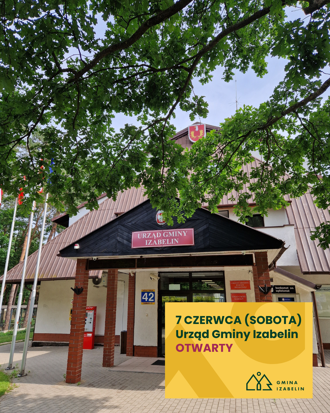 Jutro, w sobotę 7 czerwca Urząd Gminy Izabelin będzie otwarty. Zapraszamy w godz. 8:00-16:00.